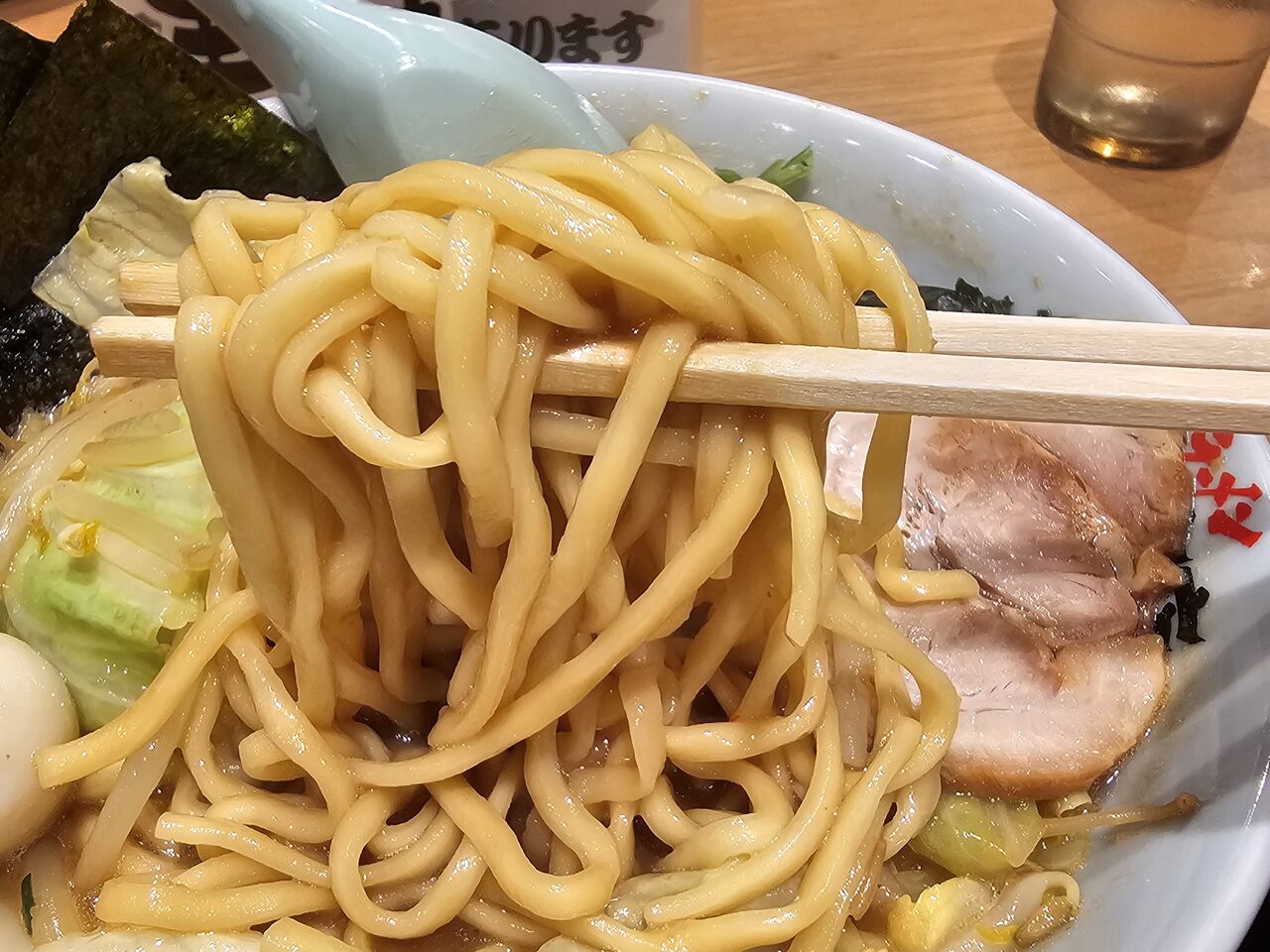 けっこう味が濃いめだからか、麺が若干スープの色に染まってません?