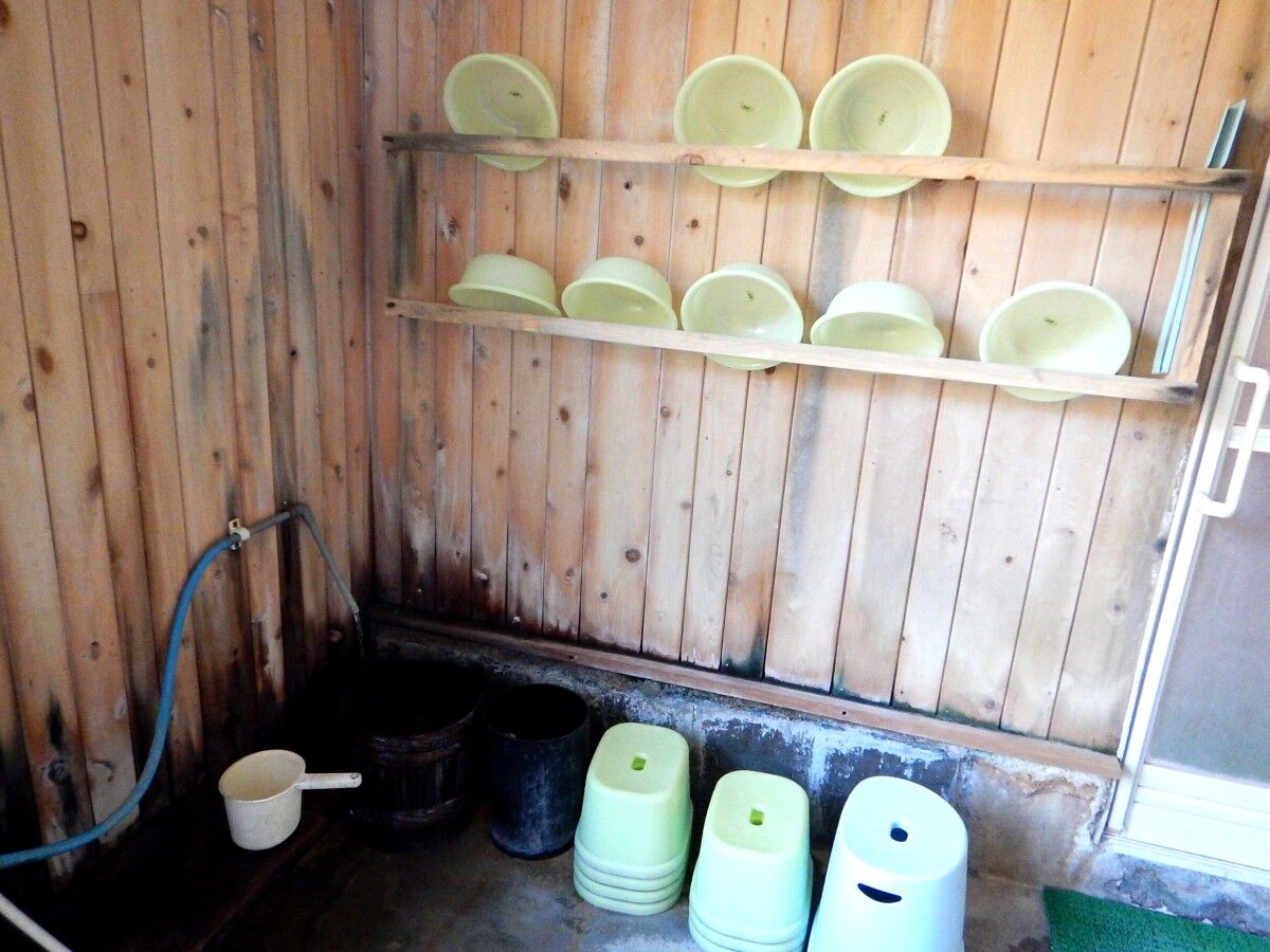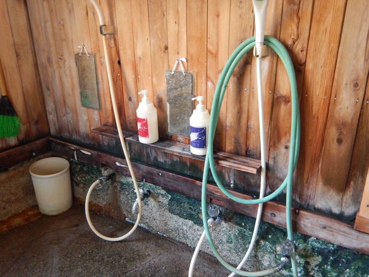 洗い場は水の蛇口と、お湯のみのシャワー栓があります。