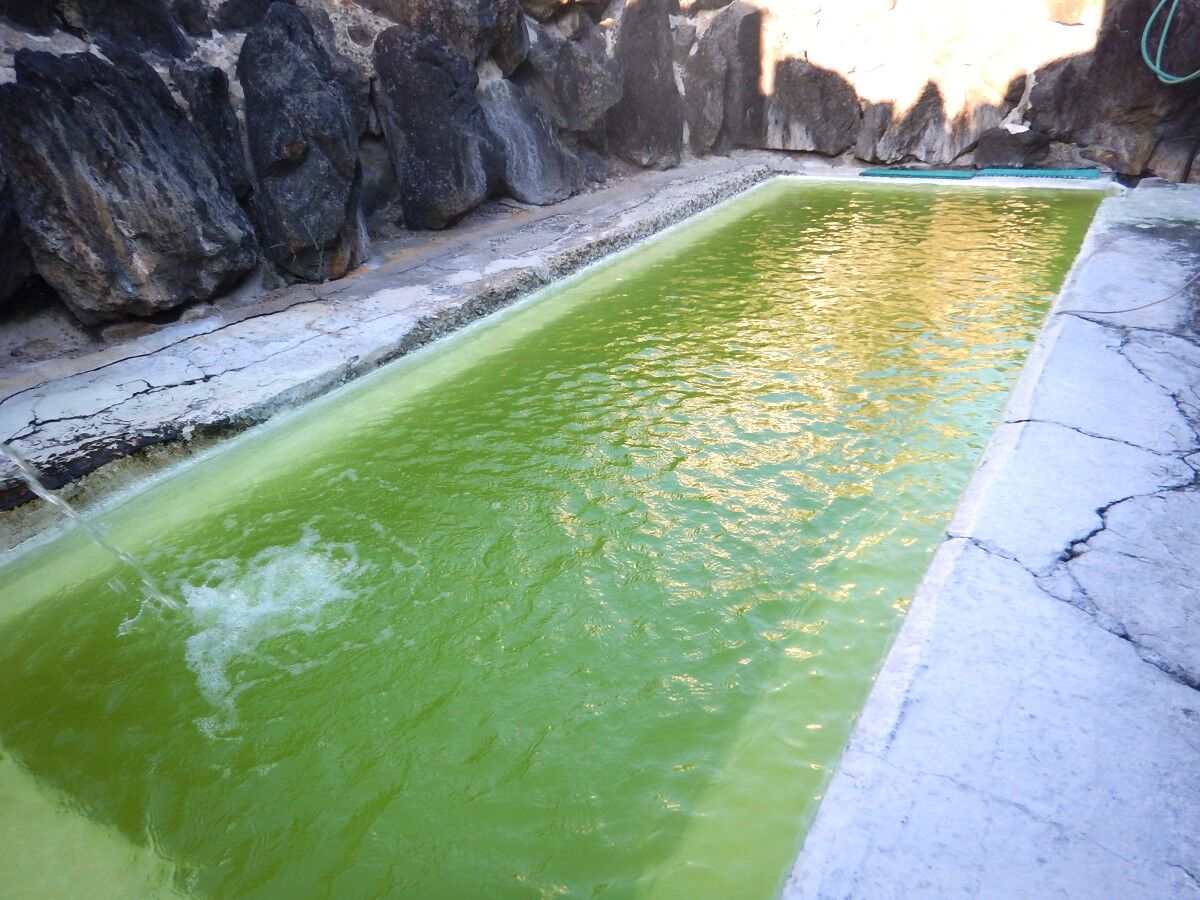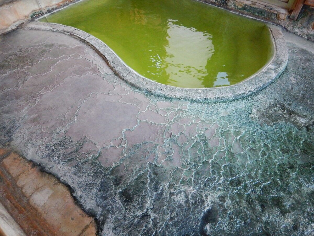 表面にはうっすらと析出物が膜を作っており、底にはたっぷりと湯の華が沈んでいました。