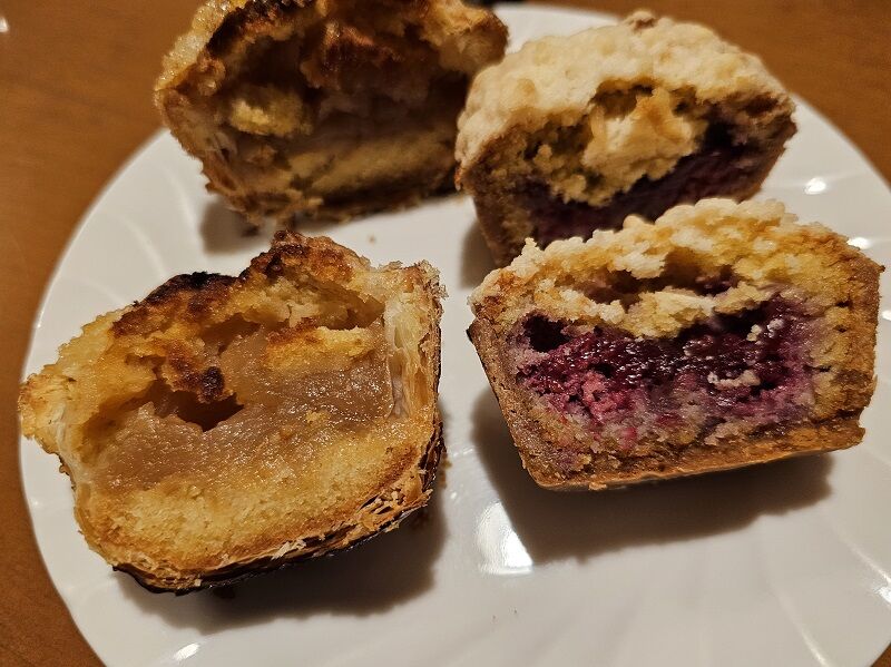 左はアップルパイ。右はラズベリーアーモンドタルト。・・・だそうで。