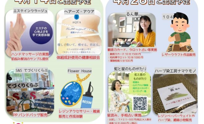 明日4月14日は、今月1回目のゆぴあマルシェ開催日ですSource【天童最上川温泉 ゆぴあのブログ】-------------------------------------【今週末はマルシェ開催日ですἺ…