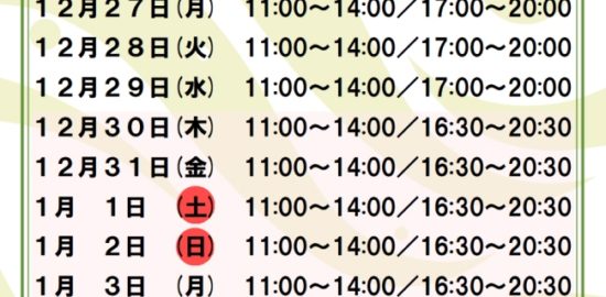 お食事処せせらぎ 年末年始の営業時間