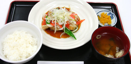 【やまがたGOTOEAT実施中】「白身魚の黒酢あん定食」Source【天童最上川温泉 ゆぴあのブ…