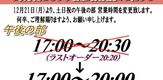 お食事処せせらぎ 営業時間変更のお知らせ