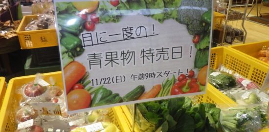 【11月22日(日)】「青果物特売」、「ゆぴあマルシェ」開催