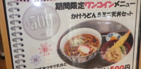 お食事処最上「かけうどん&ミニ天丼セット」500円にてご提供開始。