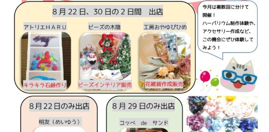 【8月22日、30日】「8月版ゆぴあマルシェ」開催。