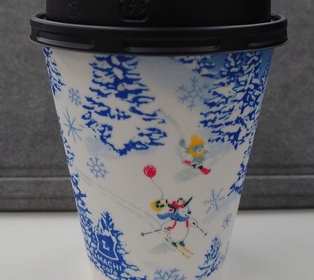 雪景色をまとったコーヒーと、道の駅からのおみやげ。