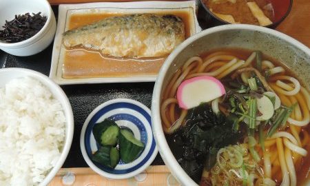 茂利多屋のさばの味噌煮定食+山菜うどん(天童市)Source【外食ログ@山形】-------…