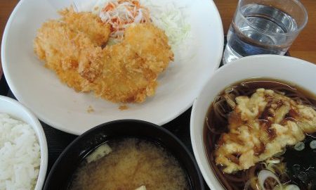 茂利多屋のチキンカツ定食+ミニかき揚げそば(天童市)