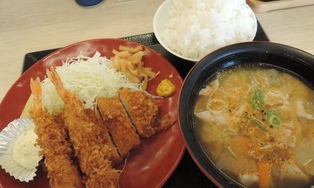 かつや山形江俣店の海老・ロースかつ定食(山形市)