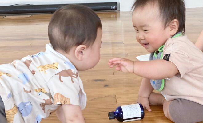 赤ちゃん同士、お友達と関わっていて楽しそうで嬉しい♡ベビーマッサージ山形大江町