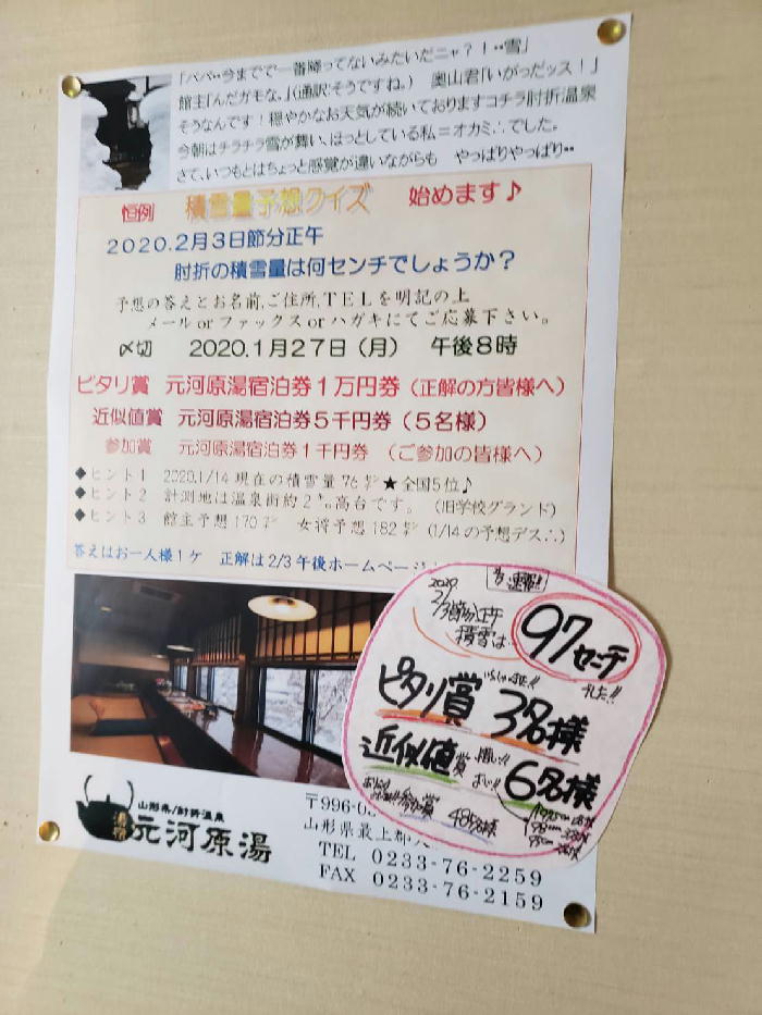 2月暦★<雪クイズ>からの<豆まき>・・からの<立春>♪・・の巻 Source【女将ブログ|いろりと源泉の宿 湯宿 元河原湯】 ————————————-