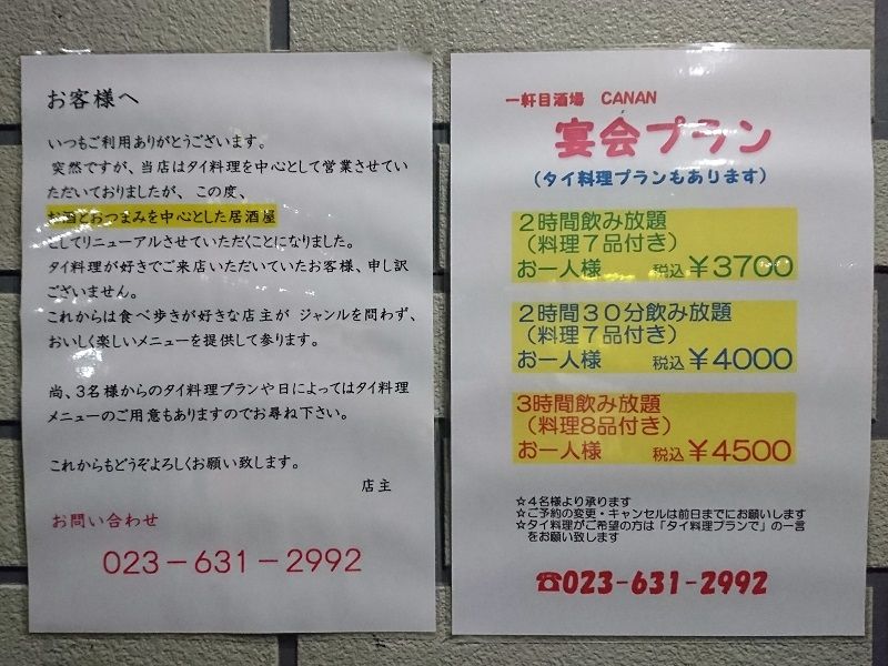 僕にとって、山形でエスニックといったら(アロハナさん→)CANANさん、ってぐらいイメージが定着してただけに「何ゆえ(;´・ω・)?」って疑問が消えないんだけど・・・
