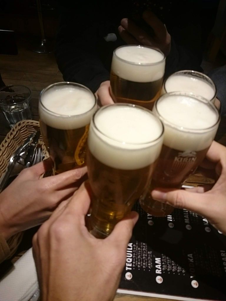 まずはビールで乾杯。炭酸が強めに感じる美味しい黒ラベルです。