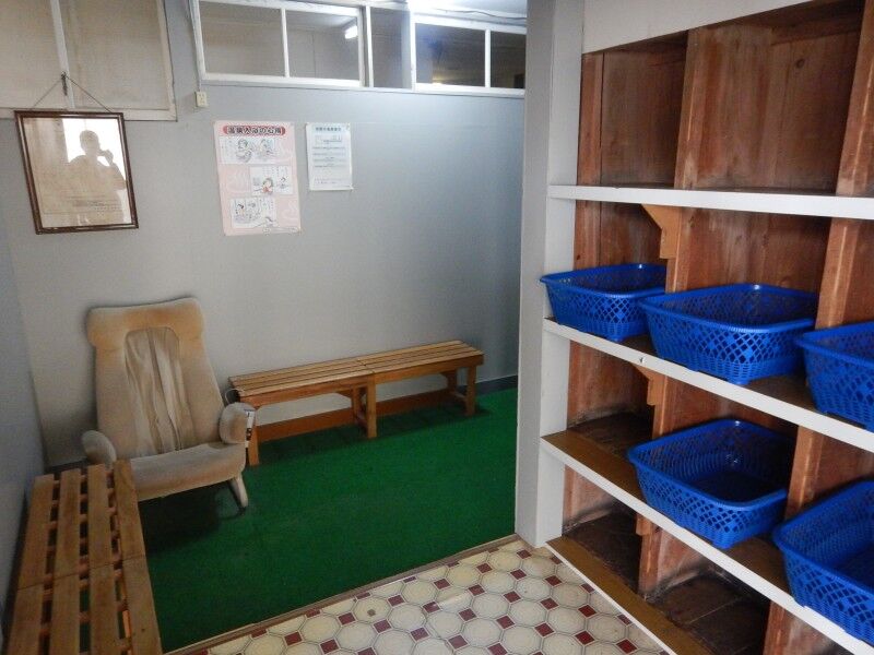 脱衣所は広くは無く、ベンチと脱衣棚のみがあります。