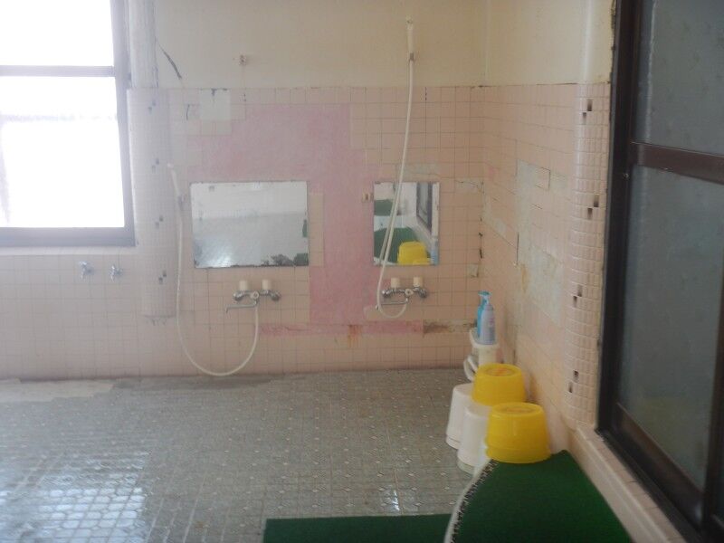 洗い場は手前と奥の隅に分かれて設置してあります。