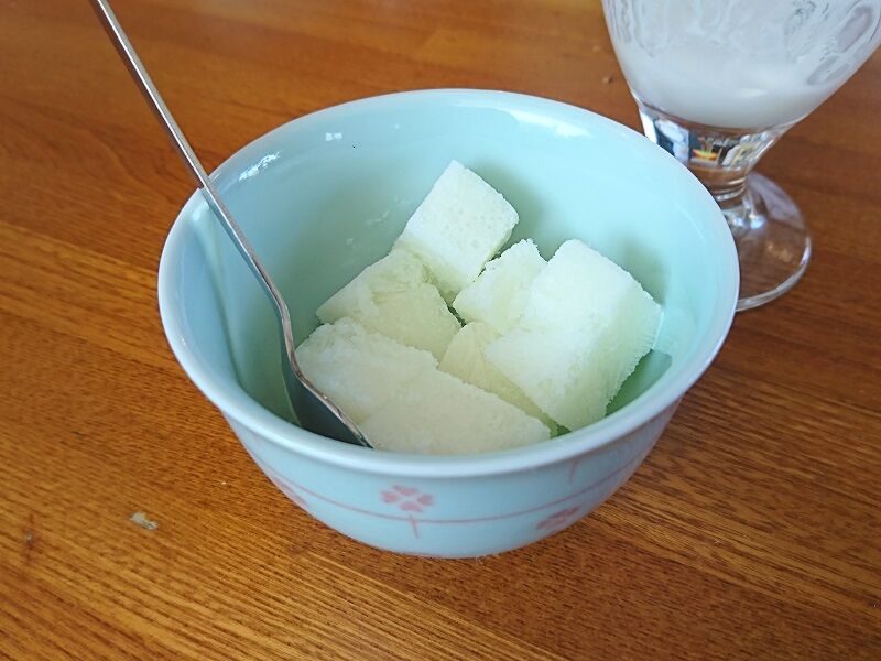 ラッシーのシャーベット。むかし子供のころ、冷凍庫で牛乳凍らせてアイス作ったな~なんて思い出がよみがえるような素朴なアイス。いや、シャーベットでした( *´艸`)