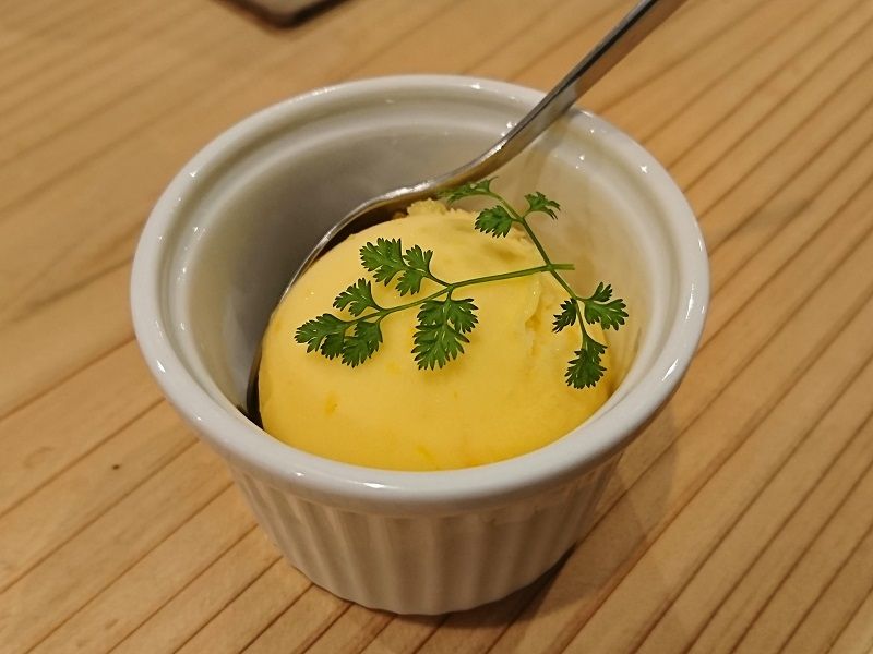 そしてこの後ももっちり食感のパスタと、シャーベットがデザートに出てコース料理は終了。