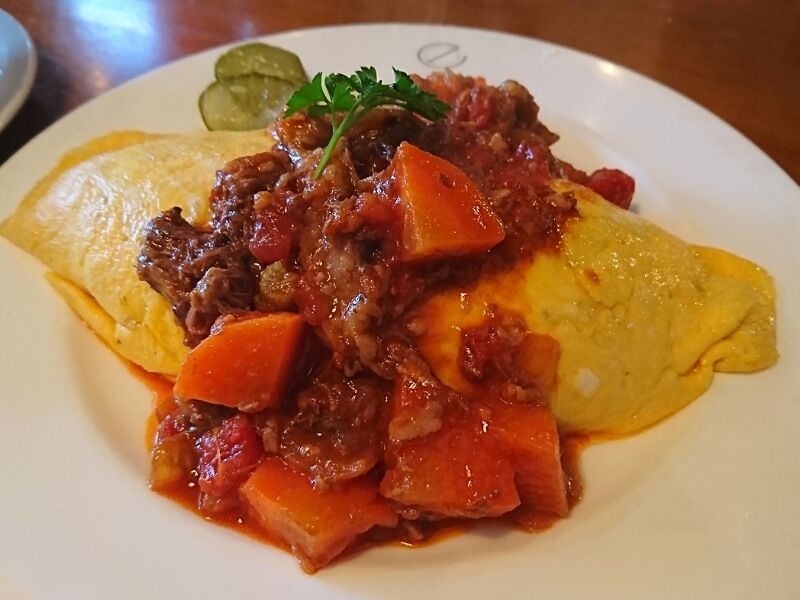 こちら、本日の日代わり。パリ風山形牛トマトソースのオムライス(゚▽゚*)ニパッ♪