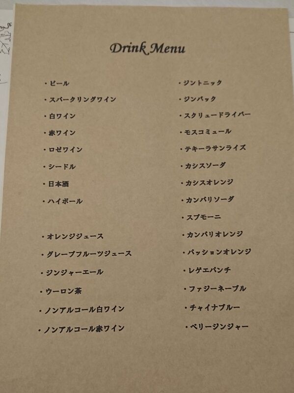 今回は飲み放題でお願いしたのですが、そのドリンクメニューはこんな感じ。