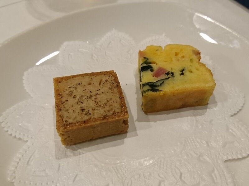 ケークサレに豚肉のリエット。おっ、リエットは前回も食べたぞ( ´艸`)