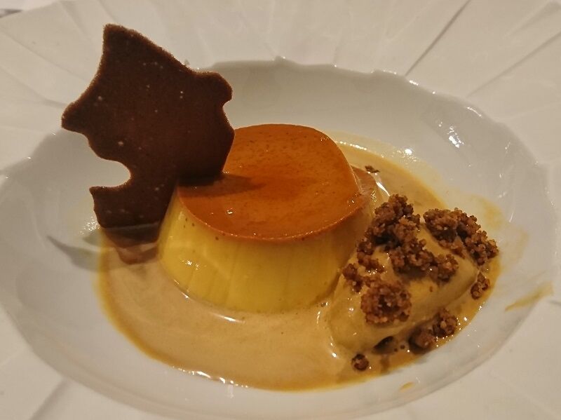 水戸部酒造の酒粕を使ったプリンにアイスクリームを添えて。