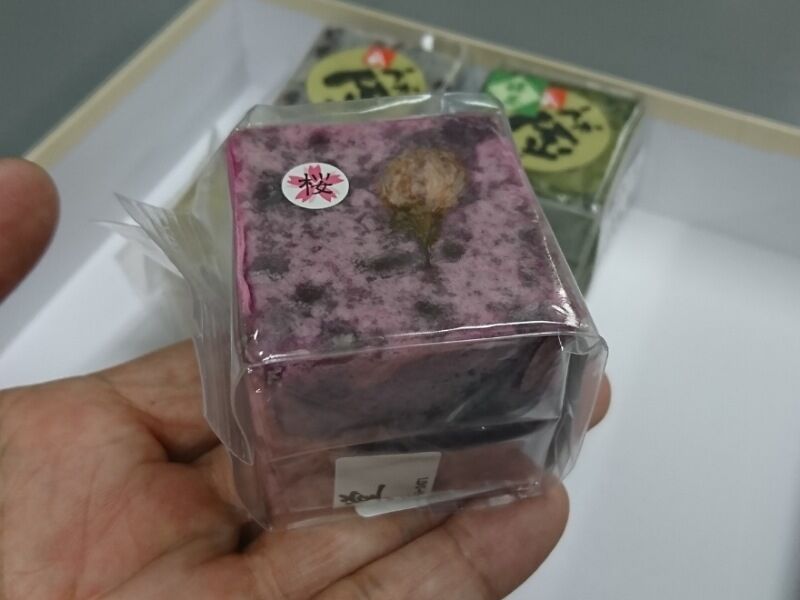今の時期らしく、桜の金つば。手にのせるとかなりのずっしり感があります。