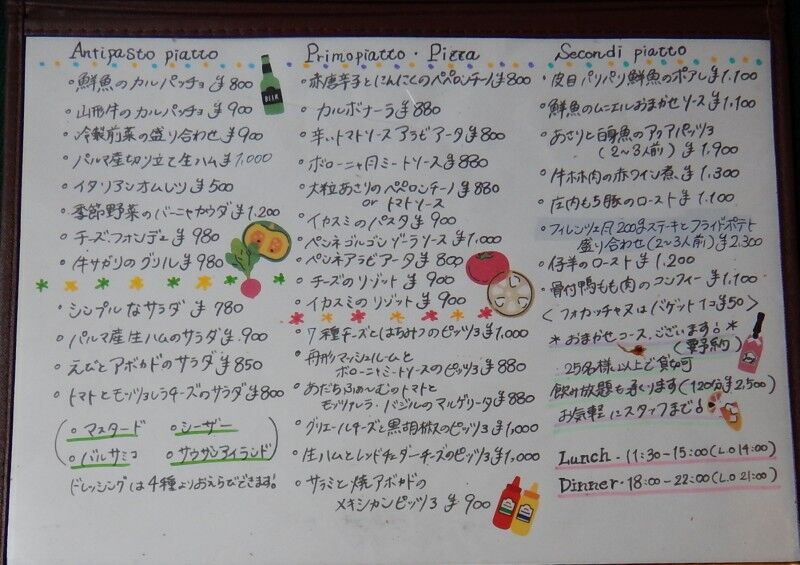 土日祝もランチはあるそうですが、リーズナブルなAランチとピザランチは平日のみ。