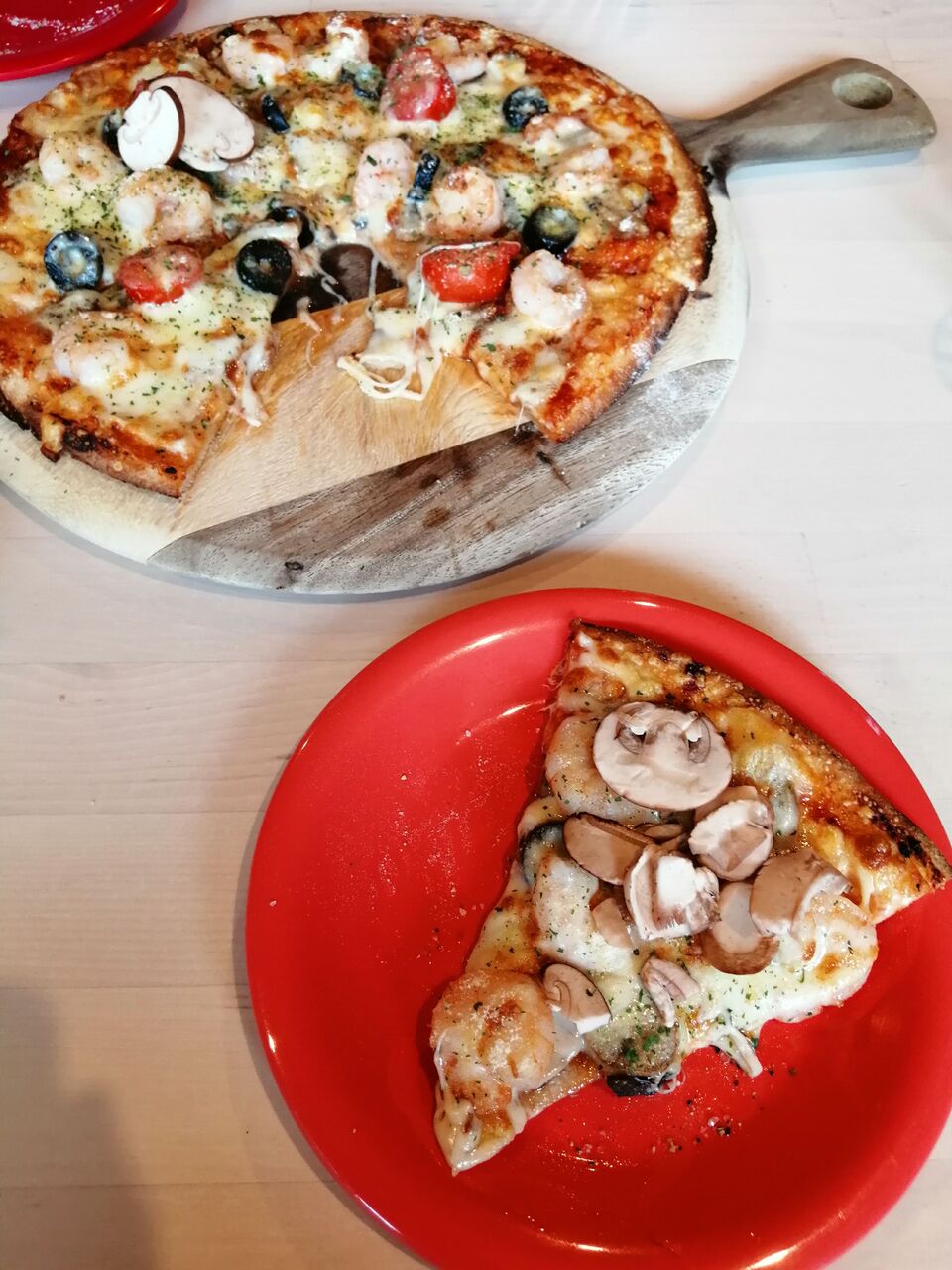 これも美味しかった。エビがプリッとしていてオリーブの香りが良いアクセント。チーズもたっぷりでかなり食べごたえがあります。2人で1枚でも十分なボリュームです。