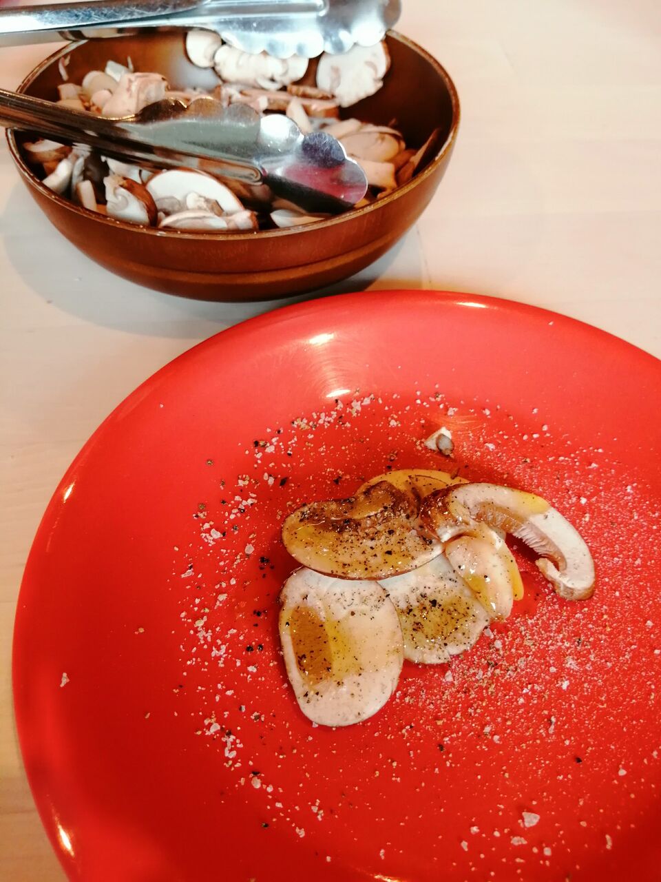 初めて食べる生のマッシュルームは期待以上に美味しかったです。スープが美味しいのでぜひ食べてみてください。