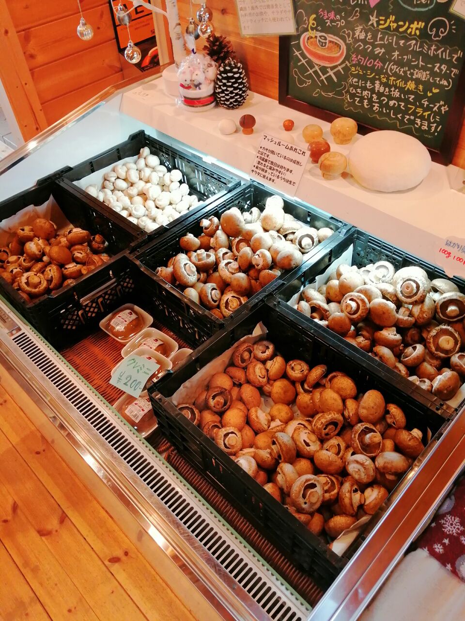 レストランの入っている建物ではマッシュルームを加工したスープなどの食品の他に生のマッシュルームも売っています。