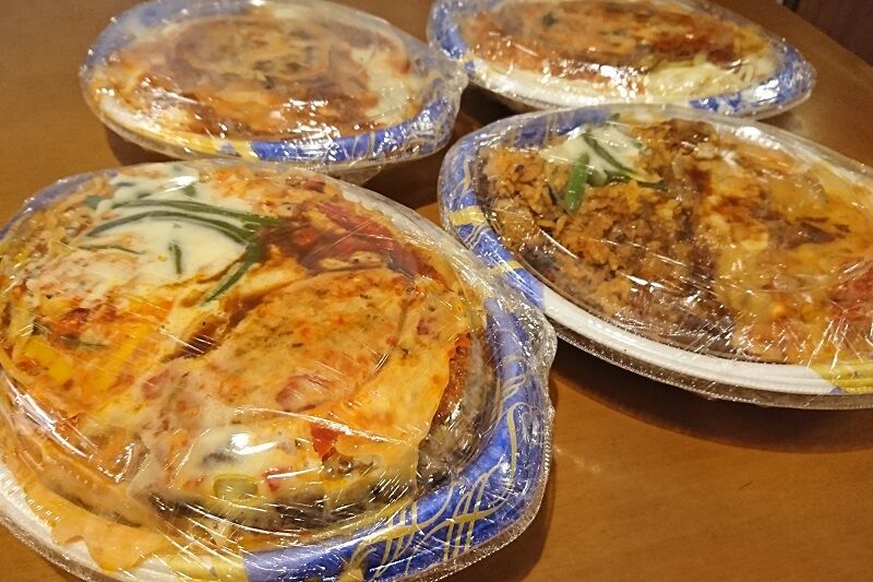 18:00に取りに伺うということで、テイクアウトメニューから4人分お願いしておいたんだよ。