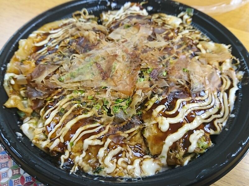 この容器に入ったお好み焼きを見た瞬間には、ちょっと寂しいかな・・・と思って不安になったけど、実際に箸を入れてみると意外に厚みがあってボリュームも十分。
