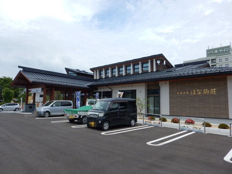 天童温泉に新しくできた日帰り温泉施設はな駒荘へやってきました。