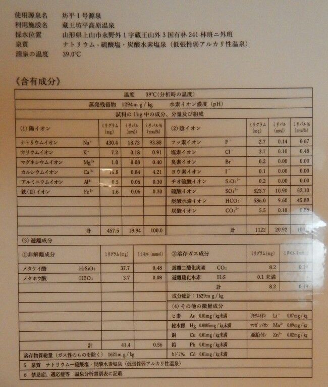 成分表は温泉表示と一緒になったものが脱衣所に掲示。