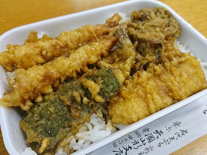 それと、お持ち帰りメニューには天ぷら盛り合わせ、1人前1080円っていうのもあるんだよね。内容は海老2本・穴子・いか・キス・野菜4点。ご飯が自前で用意できるなら、これを持ち帰って食べるのも断然アリだと思うな。