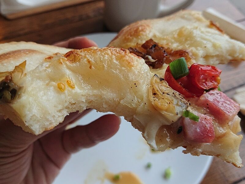 焼き上がりの食感もいいね。単純にクリスピーというわけでもなく、パン生地でもない。