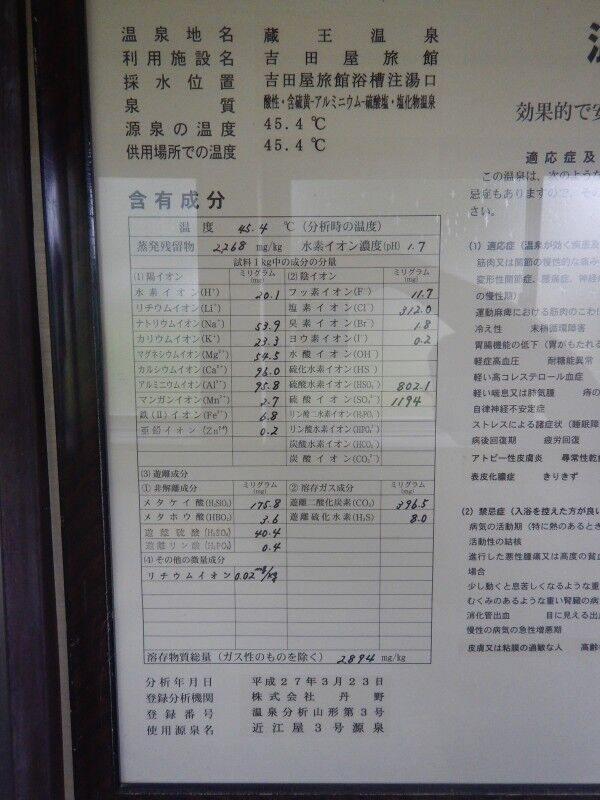 本日は蔵王温泉の吉田屋で日帰り入浴。