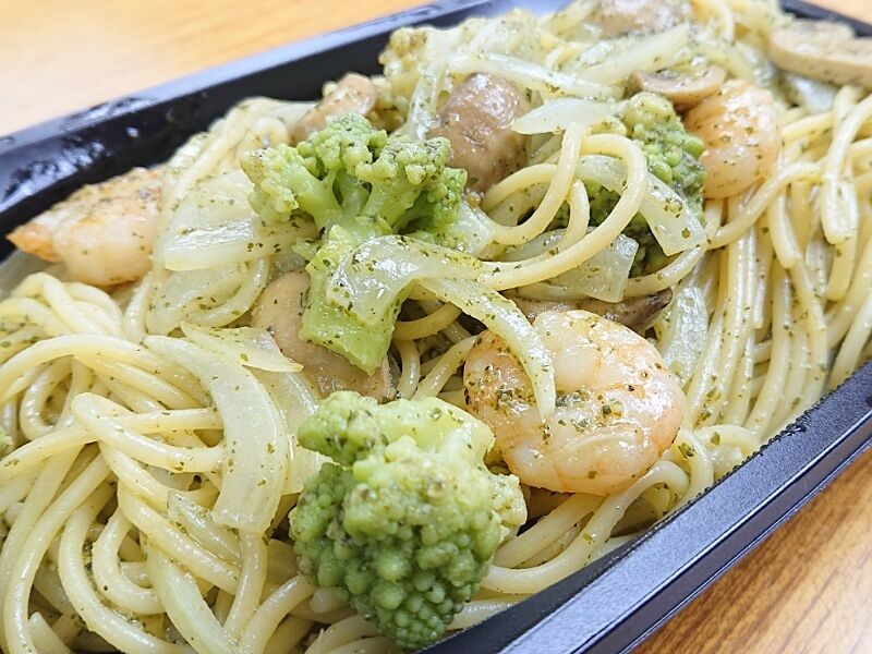こちらのお店は、お店で出してるメニューならある程度テイクアウトでも対応してくれるイメージなんだけど、前にお店にお邪魔したときに上司が食べてたバジルソースのスパゲッティが美味しそうだったので、今回僕も海老とブロッコリーのバジルスパゲッティを食べることにしてみた♪