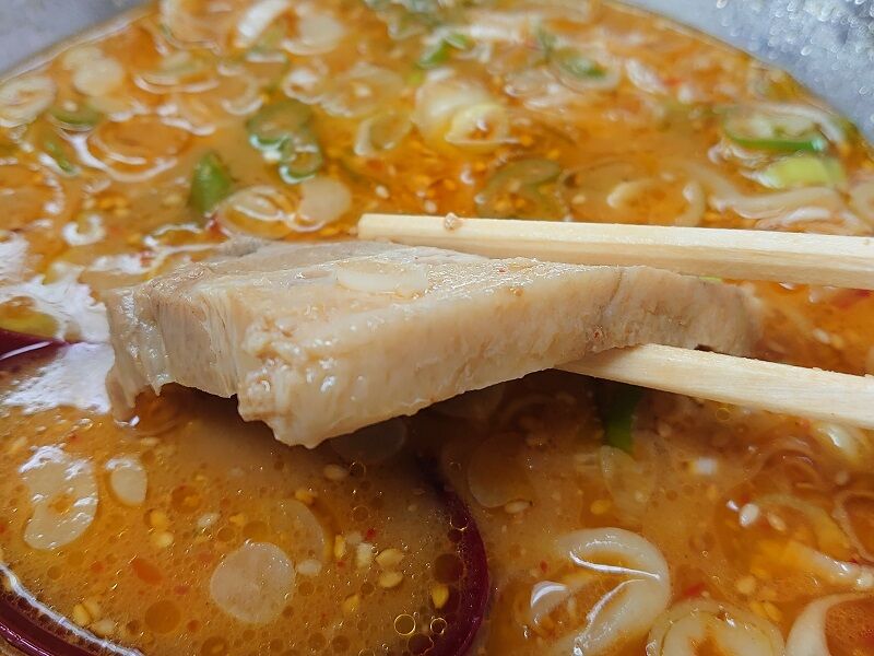 トッピング無料の辛みそももらってみたんだけど、これはもともと味噌のスープが濃いからか、ニンニクチップほど味の変化は感じられなかったな。