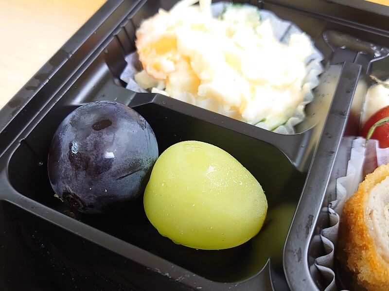 お弁当に、こんなふうにぶどうだったりさくらんぼだったり、旬のフルーツがさり気なく入ってくるのが山形らしい。