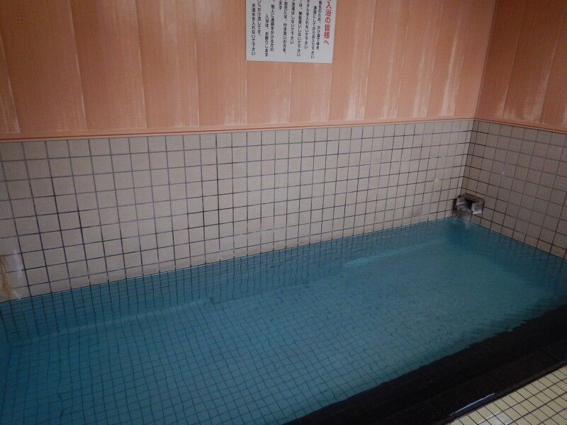 湯舟はタイル張りの長方形で、4~5人程度は利用できそう。
