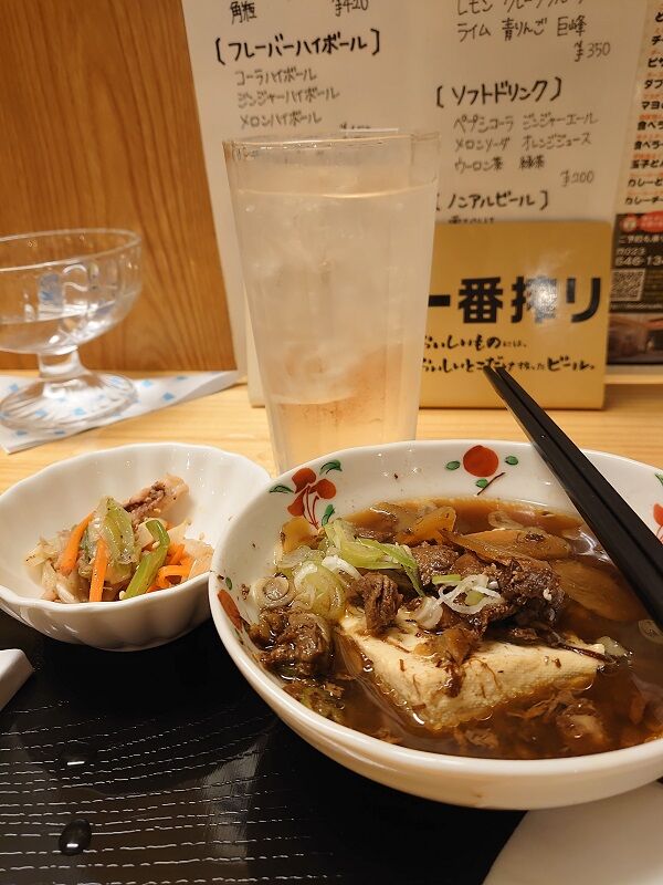 煮込みは豆腐が大きめで、なおかつ味が濃いめにしてあるからビールのおともにはピッタリだね♪