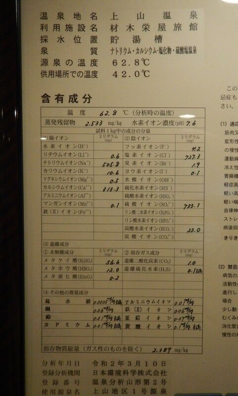 温泉成分表は壁に掲示されていましたが、お湯使いの温泉表示は見当たりません。