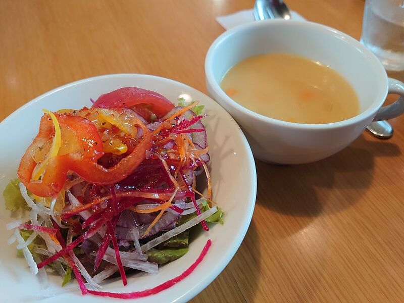 サラダも新鮮野菜って感じがしてとても美味しい。ドレッシングはしっかりかけてあったけど、野菜が美味しいからドレッシングはもう少し抑えめでもいいかもね(^^;