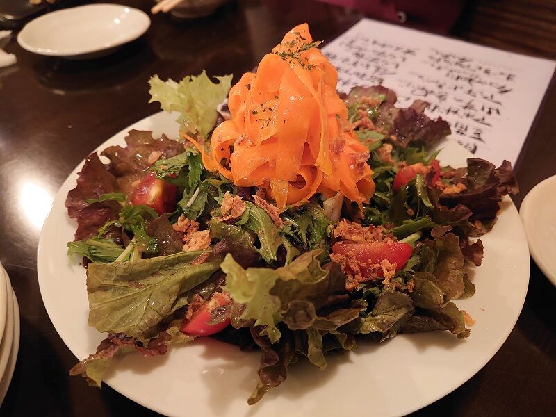 このサラダは、とりあえずメニューから何品かお願いしたところ、じゃあとりあえず何か先に食べててもらえるものをお出ししますね、と言って出してくれたサラダ。