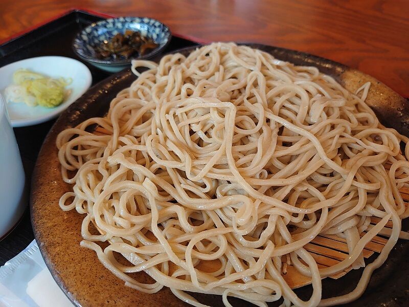 しっかりとした噛み応えのある食感、太さにばらつきのある手切り感はまさに手打ちそば。