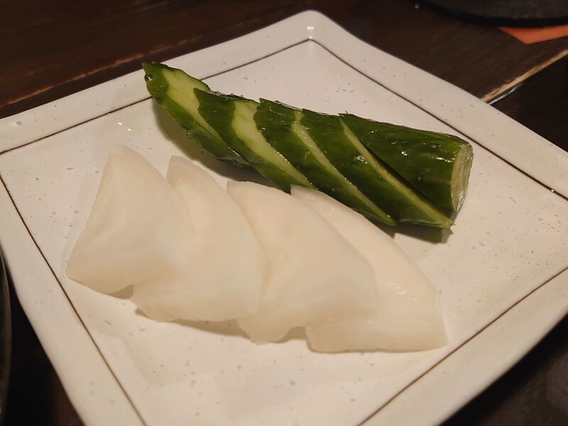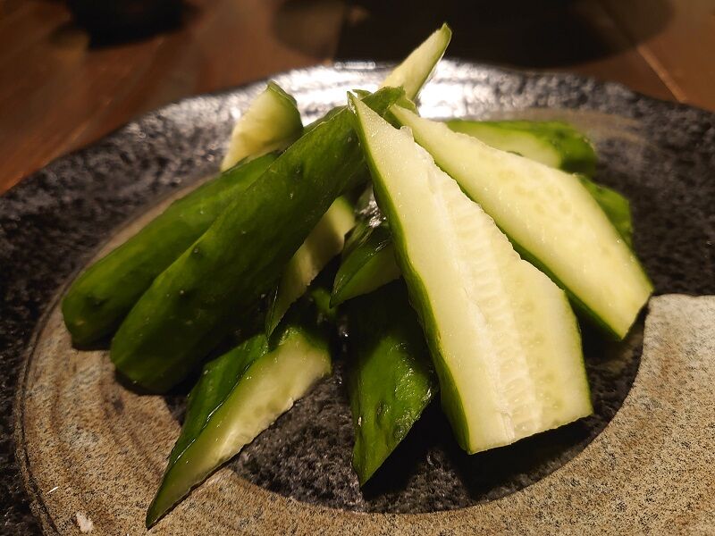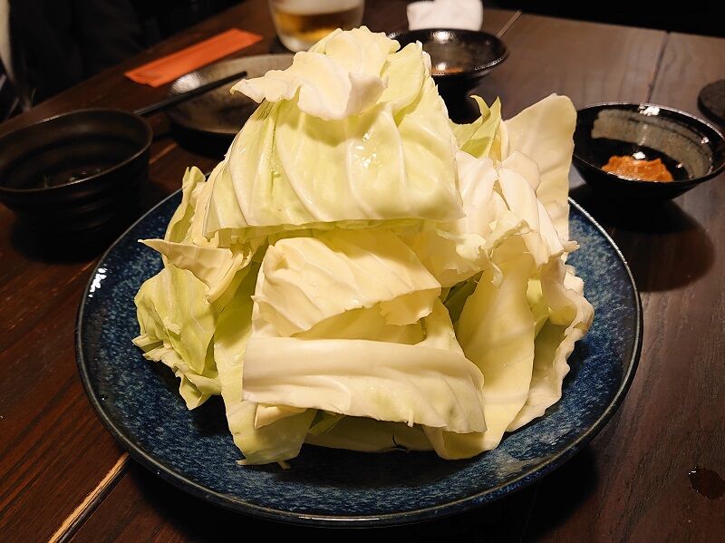 こちらのお店でも、最初は生キャベツと生キュウリが出てきたよ。