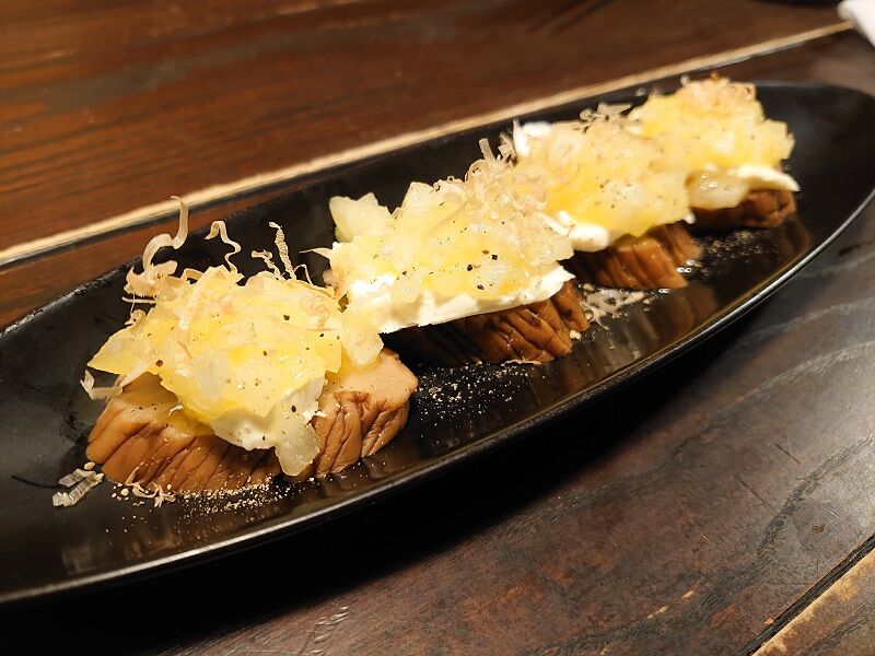 途中、味覚に変化を与えてくれるのがこのいぶりがっこのチーズ載せ。